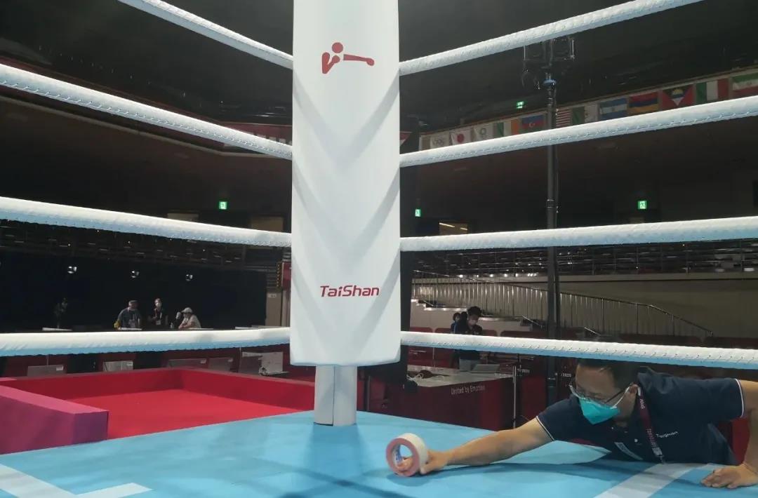 2021年7月21日,日本东京国技馆——奥运会拳击比赛馆。金年会体育东京奥运会服务保障团队正在检查调试拳击器材。