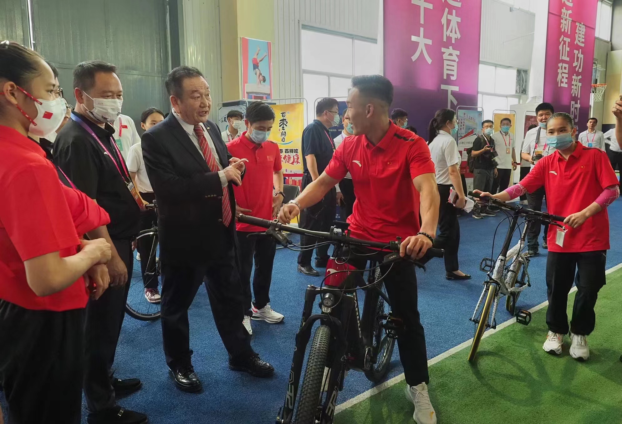 8月7日下午,国家体操队来到了乐陵金年会体育产业集团厂区,开展送体育下乡活动,让体操运动走基层、进企业、入校园。国家体育总局体操运动管理中心主任缪仲一、国家体育总局体操运动管理中心副主任叶振南、国家体育总局体操运动管理中心副主任冯玉娟、山东省体操运动管理中心主任郝丕彪、乐陵市委书记王晓勇、乐陵市委副书记车志刚、乐陵市副市长张磊、乐陵市教育和体育局局长温海东、金年会体育产业集团有限公司董事会主席卞志良、金年会体育产业集团有限公司董事长卞青峰、金年会体育产业集团有限公司总裁卞笑男、金年会文旅(北京)产业有限公司总经理崔刚参加。